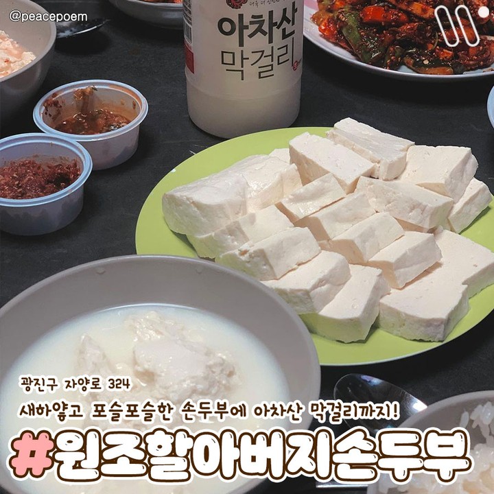 새하얗고 포슬포슬한 손두부에 아차산 막걸리까지