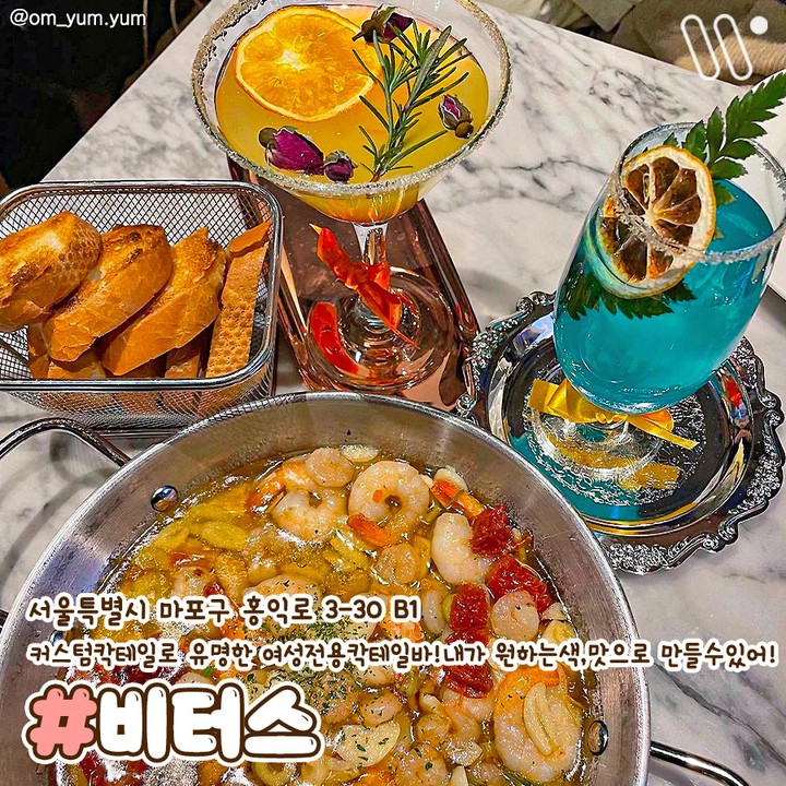 커스텀 칵테일로 유명한 여성전용칵테일바! 내가 원하는 색과 맛으로 만들 수 있다.