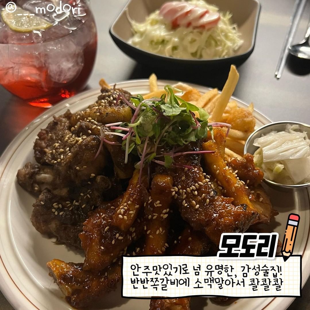 안주가 맛있기로 유명한 감성술집! 반반쪽갈비에 소맥 추천