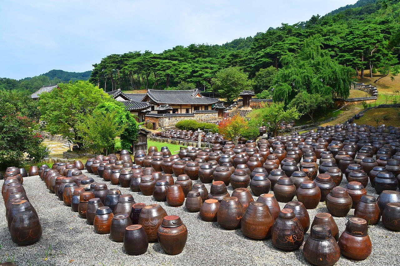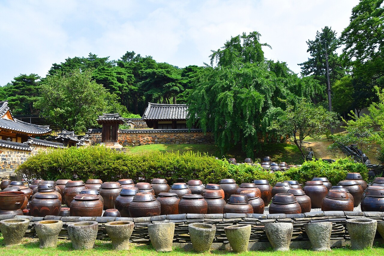 명재고택의 오른쪽을 보면 정말 정감이 가는 풍경이 펼쳐집니다. 수백 개의 장독대가 줄지어 늘어서 있어 우리나라 전통적인 모습을 보는 듯합니다. 이곳은 전통 방식으로 담그는 장이 맛있게 익는 곳이다. 둑에 올라가서 항아리와 명재고택을 배경으로 사진을 찍으면 참 아름다운 풍경을 담을 수 있습니다.
