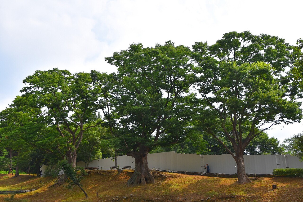 둑에 서 있는 나무와 그 아래에 놓여 있는 항아리 그리고 명재고택이 함께 어우러지는 풍경은 과히 멋지다고 할 수 있습니다. 장독대 뒤편으로는 커다란 느티나무 세 그루가 있는데 초록빛 세상이 너무도 보기 좋습니다.