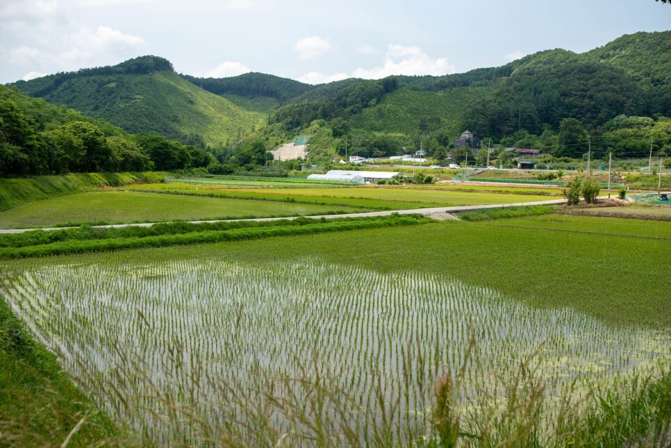 푸른 논과 병풍처럼 서있는 산만 봐도 눈이 편안해지면서 기분도 맑아지는 느낌을 받았습니다.