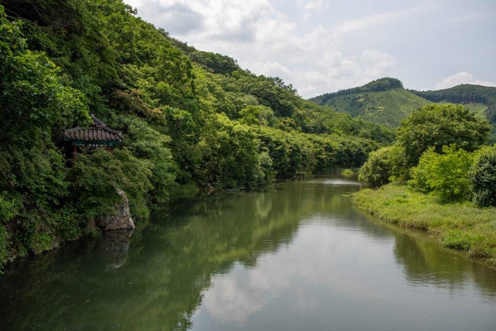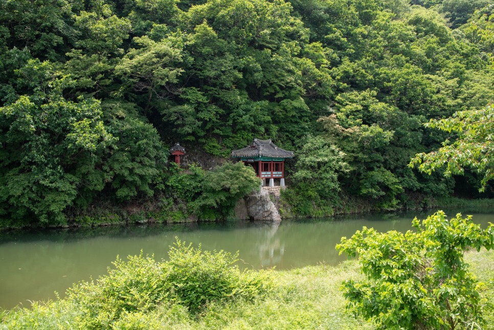 가을 단풍 시기에 유명하지만, 여름의 초록 초록한 나무와 백석정이 하천에 반영되면서 마치 과거로 온 듯한 느낌이 들었습니다.